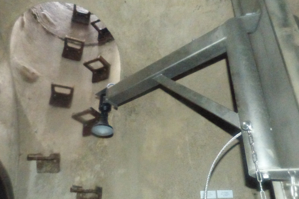 - Montage der Einhängedrucksonde in einem Edelstahlrohr (Werkstoffnummer 1.4571) an der Schachtwand