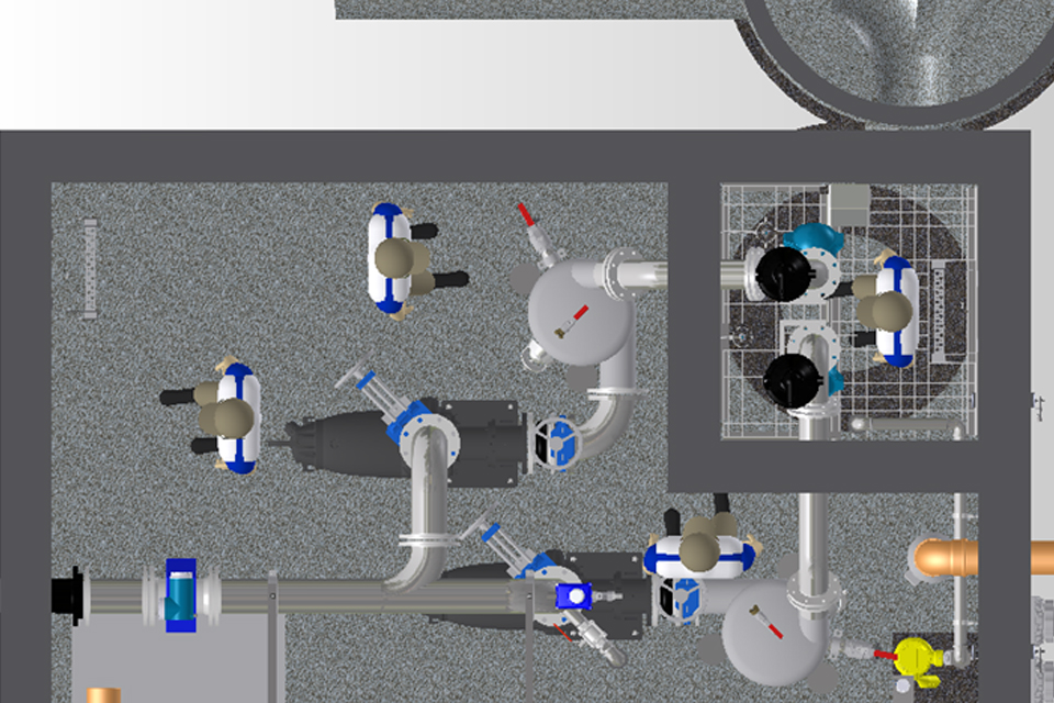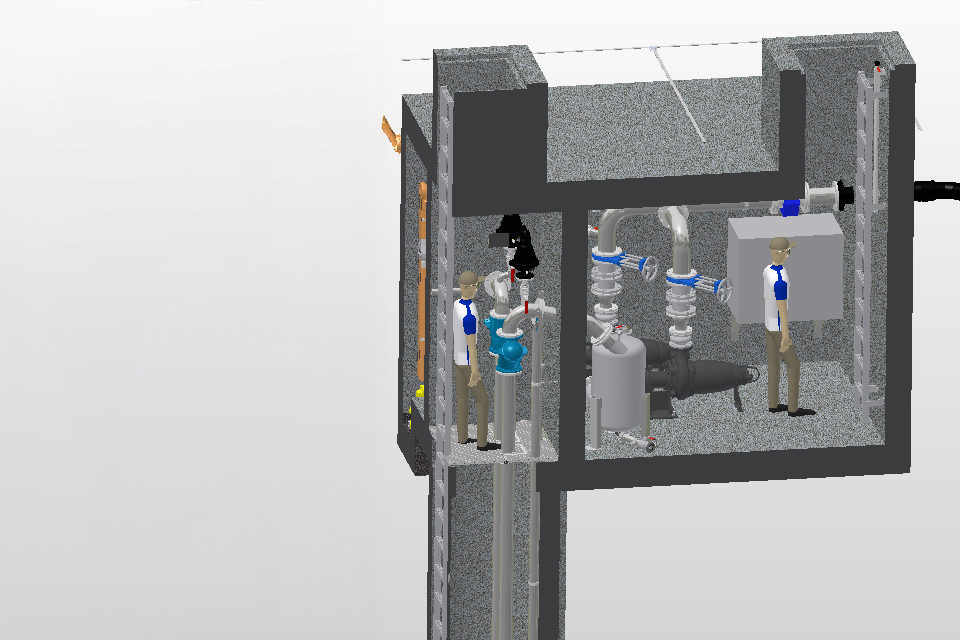 - Neuaufbau der Druckrohrleitung im Pumpwerk, inkl. Armaturen, Spülstutzen und MID