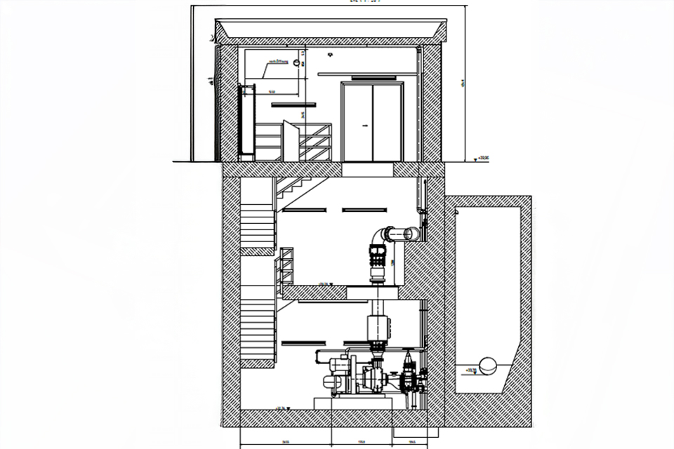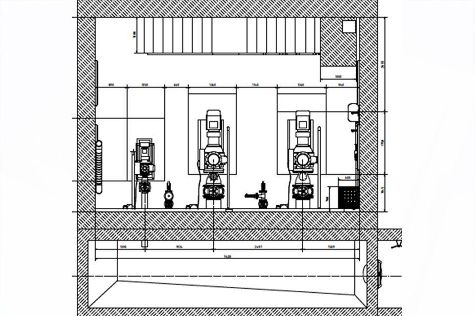 Unser Kunde betreibt und wartet ein unterirdisches Mischwasserpumpwerk. Aufgabe des 1988 unterirdisch erbauten Pumpwerkes mit einem aufgebauten Hochbauteil ist die Zwischenspeicherung und Förderung von zufließendem Mischwasser der Zulaufleitung DN 500 über zwei Druckrohrleitungen aus GGG DN 150 und DN 400 in den unmittelbar neben dem Pumpwerk liegenden Sammler 2.600/2890 in das nachfolgende Kanalnetz.