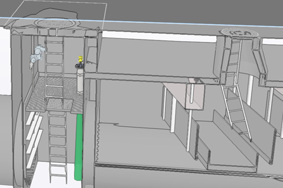 Im Sonderbauwerk „Regenüberlauf" und am Schacht der Rückstauklappe entsprechen die Schachteinstiege nicht den arbeitssicherheitstechnischen Anforderungen und müssen bautechnisch angepasst werden. Es handeln sich hierbei um drei Schachteinstiege in das Überlaufbauwerk, ein Einstieg in das benachbarte Schieberbauwerk, ein Einstieg in das Trennbauwerk am Schacht und ein Einstieg zur Rückstauklappe.
