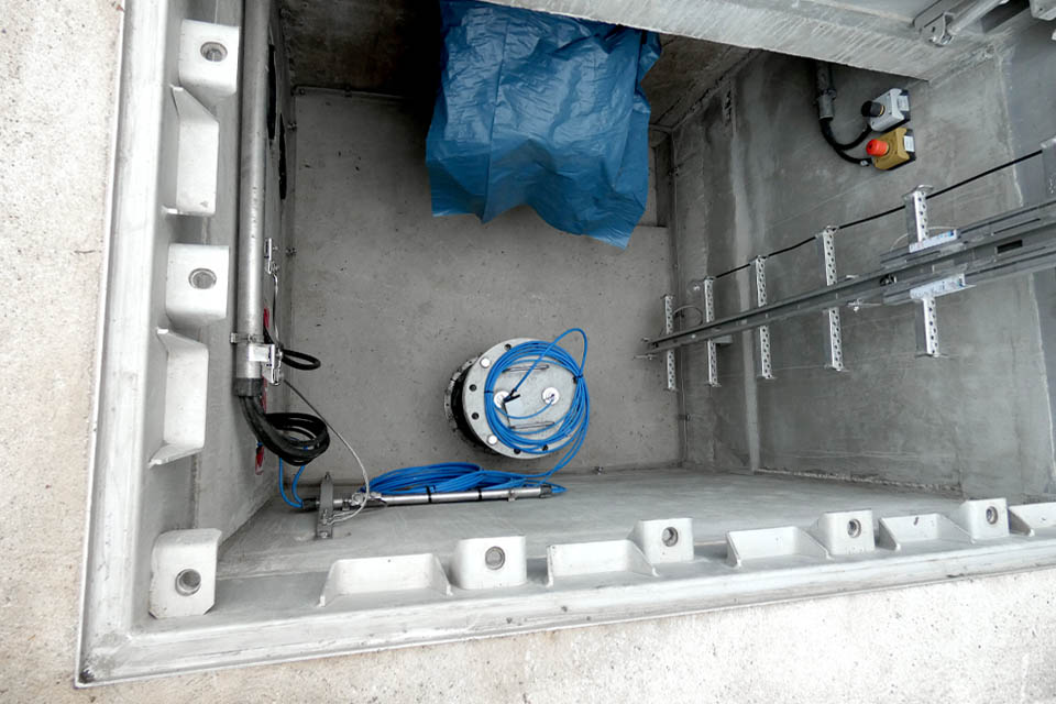 • Montage einer Einhängedrucksonde für die Füllstandsmessung im Schieberbauwerk